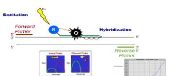 熒光探針法是用序列特異的熒光標(biāo)記探針來檢測(cè)產(chǎn)物,探針法的出現(xiàn)使得定量PCR技術(shù)的特異性比常規(guī)PCR技術(shù)大大提高。目前較常提及的有TaqMan探針、FRET雜交探針(熒光共振能量傳遞探針)和分子信標(biāo)Molecular Beacon。