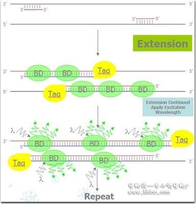 熒光探針法是用序列特異的熒光標(biāo)記探針來檢測(cè)產(chǎn)物,探針法的出現(xiàn)使得定量PCR技術(shù)的特異性比常規(guī)PCR技術(shù)大大提高。目前較常提及的有TaqMan探針、FRET雜交探針(熒光共振能量傳遞探針)和分子信標(biāo)Molecular Beacon。